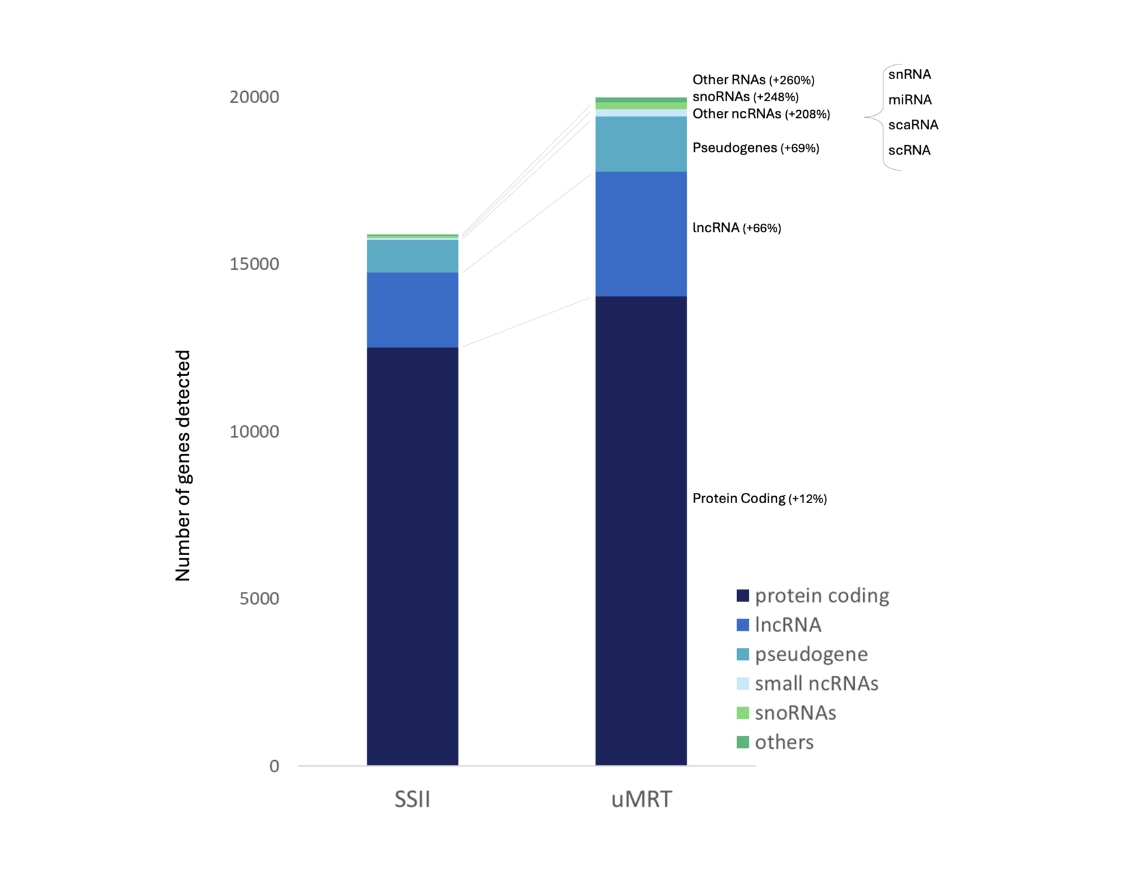 uMRT identified more genes in each RNA class.